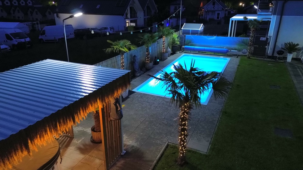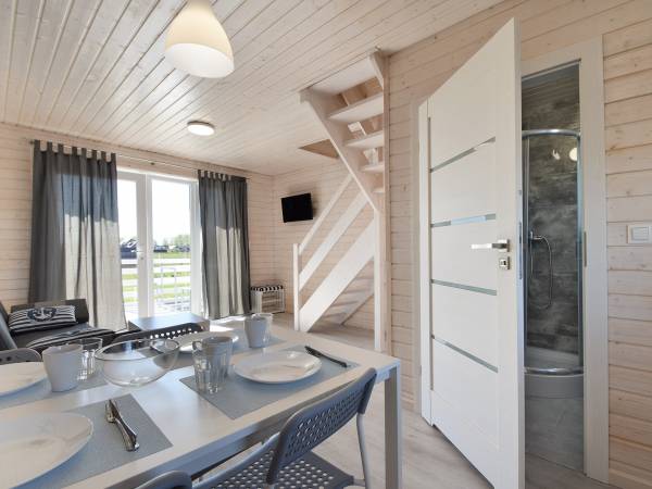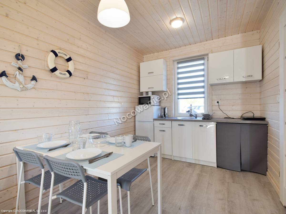 Nowocześnie urządzone, komfortowo wyposażone z pewnością spełnią oczekiwania wymagajacych klientów. Kompleks posiada dostęp do basenu o wymiarach 8,5x3,7x155cm z podgrzewaną wodą, monitorowane miejsce parkingowe dla każdego domku, plac zabaw, grille, a na tarasach indywidualne zestawy wypoczynkowe. Wewnątrz salon z aneksem kuchennym, telewizorem. W kuchni znajduje się lodówka mikrofalówka czajnik elektryczny, toster, płyta indukcyjna, zestaw garnków, patelni. Dodatkowo pełna zastawa obiadowa sztućce szklanki itp. Piętro domków to część sypialniana, 5 wygodnych łóżek okrytych świeżą pościelą. W łazience kabina prysznicowa toaleta umywalka. Gościom nie zapewniamy jedynie ręczników. W domkach obowiązuje całkowity zakaz palenia papierosów jest do tego wyznaczone miejsce.
