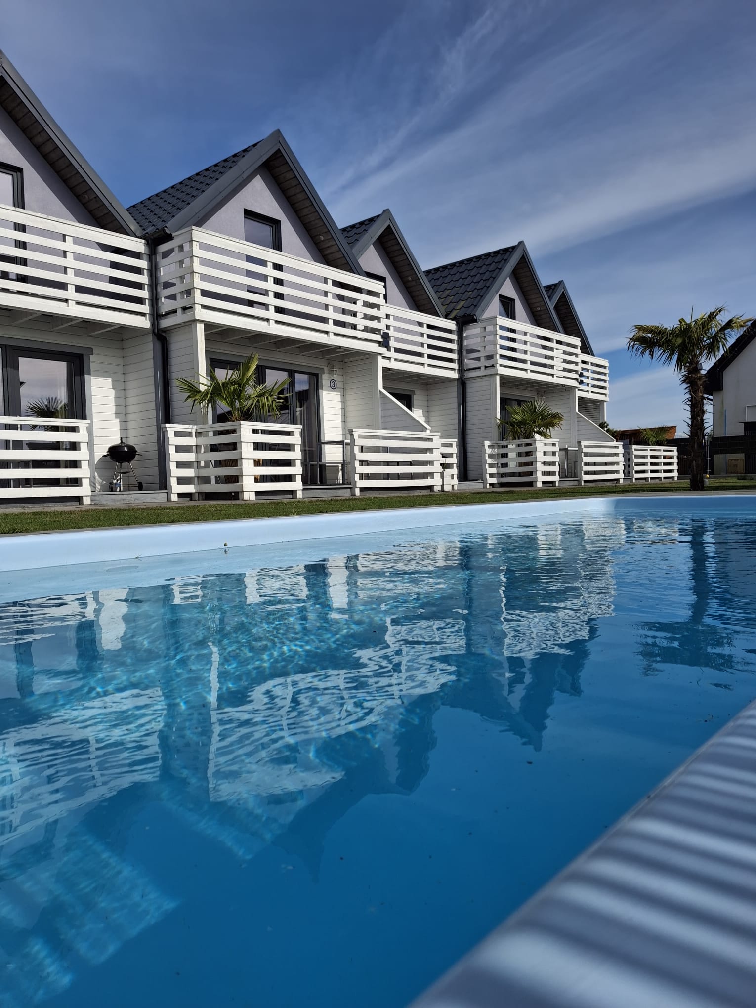 Nowocześnie urządzone, komfortowo wyposażone z pewnością spełnią oczekiwania wymagajacych klientów. Kompleks posiada dostęp do basenu o wymiarach 730 x 320 z podgrzewaną wodą, monitorowane miejsce parkingowe dla każdego domku, plac zabaw, grille, a na tarasach indywidualne zestawy wypoczynkowe....