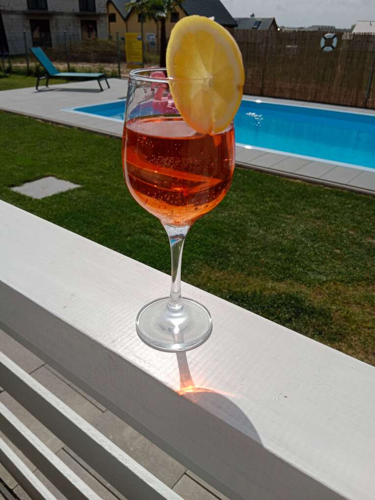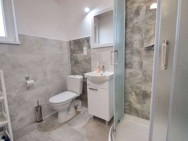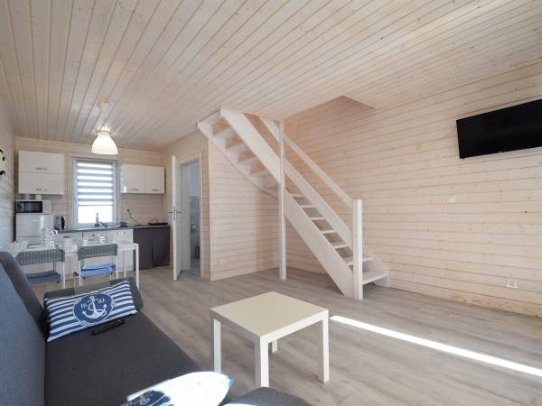 Nowocześnie urządzone, komfortowo wyposażone z pewnością spełnią oczekiwania wymagajacych klientów. Kompleks posiada dostęp do basenu o wymiarach 8,5x3,7x155cm z podgrzewaną wodą, monitorowane miejsce parkingowe dla każdego domku, plac zabaw, grille, a na tarasach indywidualne zestawy wypoczynkowe. Wewnątrz salon z aneksem kuchennym, telewizorem. W kuchni znajduje się lodówka mikrofalówka czajnik elektryczny, toster, płyta indukcyjna, zestaw garnków, patelni. Dodatkowo pełna zastawa obiadowa sztućce szklanki itp. Piętro domków to część sypialniana, 5 wygodnych łóżek okrytych świeżą pościelą. W łazience kabina prysznicowa toaleta umywalka. Gościom nie zapewniamy jedynie ręczników. W domkach obowiązuje całkowity zakaz palenia papierosów jest do tego wyznaczone miejsce.